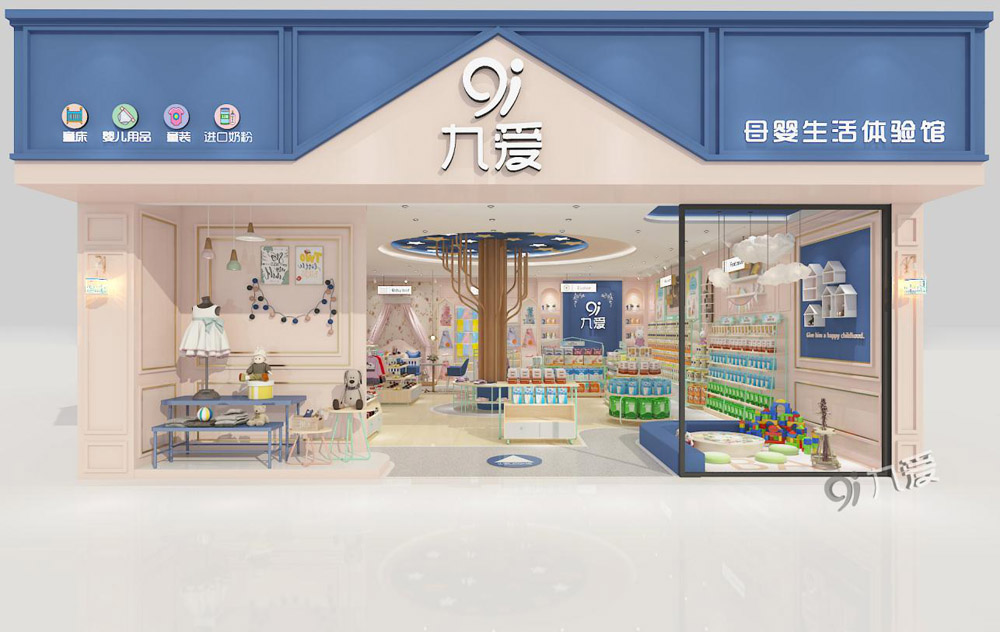 九愛母嬰店設計案例盤點,打造城市靚麗風景!