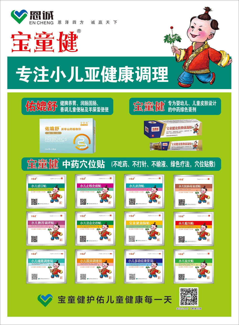 品牌名稱:寶童健 主營產品:寶童健小懸灸,寶童健中藥穴位貼,寶童健抑菌凝膠 品牌特色:傳承延續+綠色健康