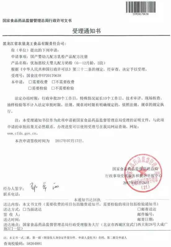 2017年11月6日,食品藥品監督管理總局公布了備受關注的第20批嬰幼兒奶粉配方注冊獲批的名單,其中的農墾龍王集團隸屬下的優才菁博成功通過配方注冊。