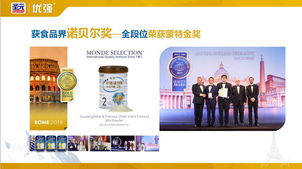 喜報!喜報!日前,在由國際品質評鑒組織(Monde Selection)舉辦的2020第56屆世界品質品鑒大會上,“圣元優強”再傳捷報,蟬聯蒙特獎金獎,此獎被稱為全球食品界“諾貝爾”獎!“圣元優強”斬獲大獎,品牌魅力盡綻,光彩大放,熠熠生輝!