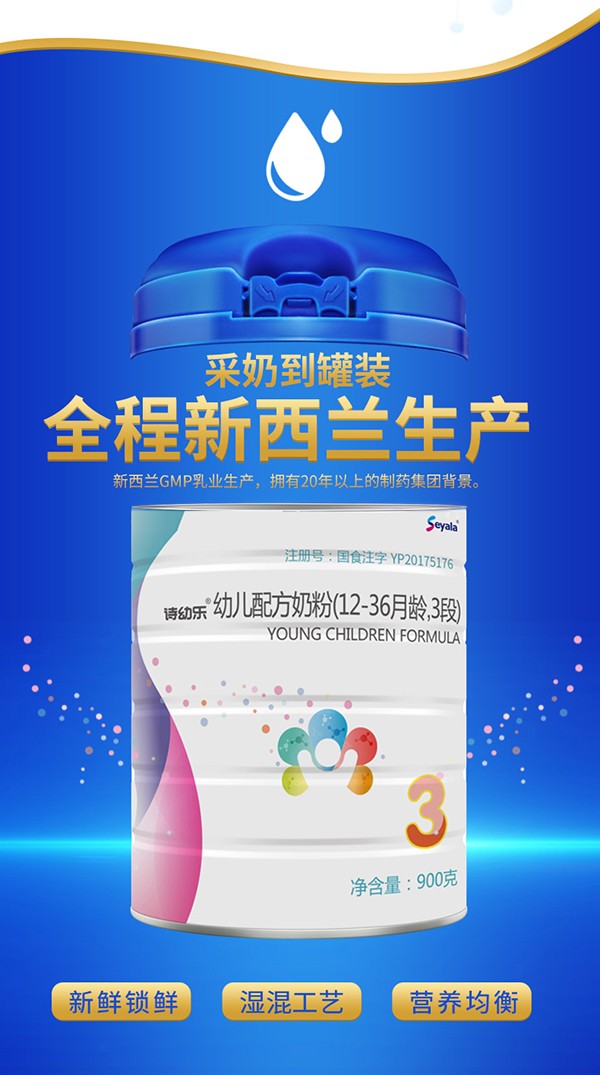 Seyala(詩幼樂)系列配方奶粉,采用當(dāng)今世界上先進(jìn)的濕法生產(chǎn)工藝生產(chǎn)。濕法工藝是指將有機(jī)鮮牛奶直接噴霧干燥,加入營養(yǎng)成分制成的。