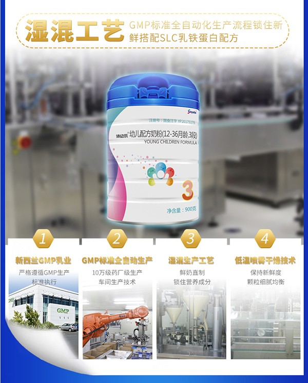 新西蘭詩幼樂是由新西蘭GMP乳業(yè)榮譽(yù)出品,GMP乳業(yè)的母公司GMP制藥集團(tuán),是新西蘭大型跨國制藥集團(tuán)。GMP工廠已獲得中國乳品生產(chǎn)GMP認(rèn)證以及有機(jī)食品等多項(xiàng)認(rèn)證,并曾兩次得到央視新聞報(bào)道的肯定。