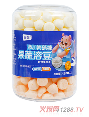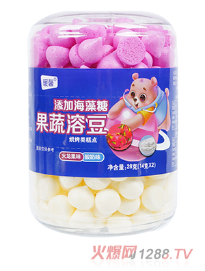 暖馨果蔬溶豆,有火龍果味、酸奶味、香蕉味、菠菜味,共四種口味,優選原材烘焙而成,特別加入海藻糖,呵護消化吸收,好吃不膩。小小一個,適合拿取。雙層設計,享受不一樣的美味。