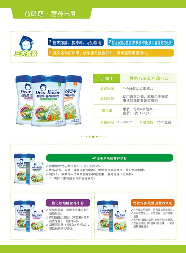 輔食添加,更多媽媽選擇親博士,尤其是這款親博士益吸萌鈣鐵鋅多維淮山營養米粉高品質輔食,甄選食材,科學配比,滿足成長階段的營養需求,健康美味,給孩子帶來不一樣的口糧體驗。受到廣大經銷商以及門店老板們的認可。