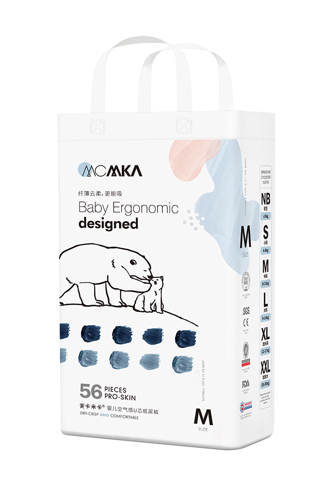 麥卡米卡嬰兒空氣感U芯紙尿褲,醫(yī)護(hù)級(jí)紙尿褲,多國(guó)檢測(cè)認(rèn)證。羽毛般輕薄,薄至0.1cm,無(wú)感般穿著,透氣舒適,自有呼吸不悶熱;臺(tái)灣進(jìn)口面層,梅花打孔設(shè)計(jì),先進(jìn)單層水刺布技術(shù),更輕薄,更柔軟親膚,讓寶寶的小屁屁更干爽,更舒服。日本進(jìn)口芯體,不易起坨斷層,自主獨(dú)特吸水系統(tǒng),海量瞬吸;全方位立體打孔,底膜25000個(gè)透氣孔,迅速散熱排濕,甄護(hù)寶寶嬌嫩肌膚,遠(yuǎn)離紅屁屁;羽柔細(xì)膩,不易移位,包裹更好;雙層防側(cè)漏,安睡一整晚。