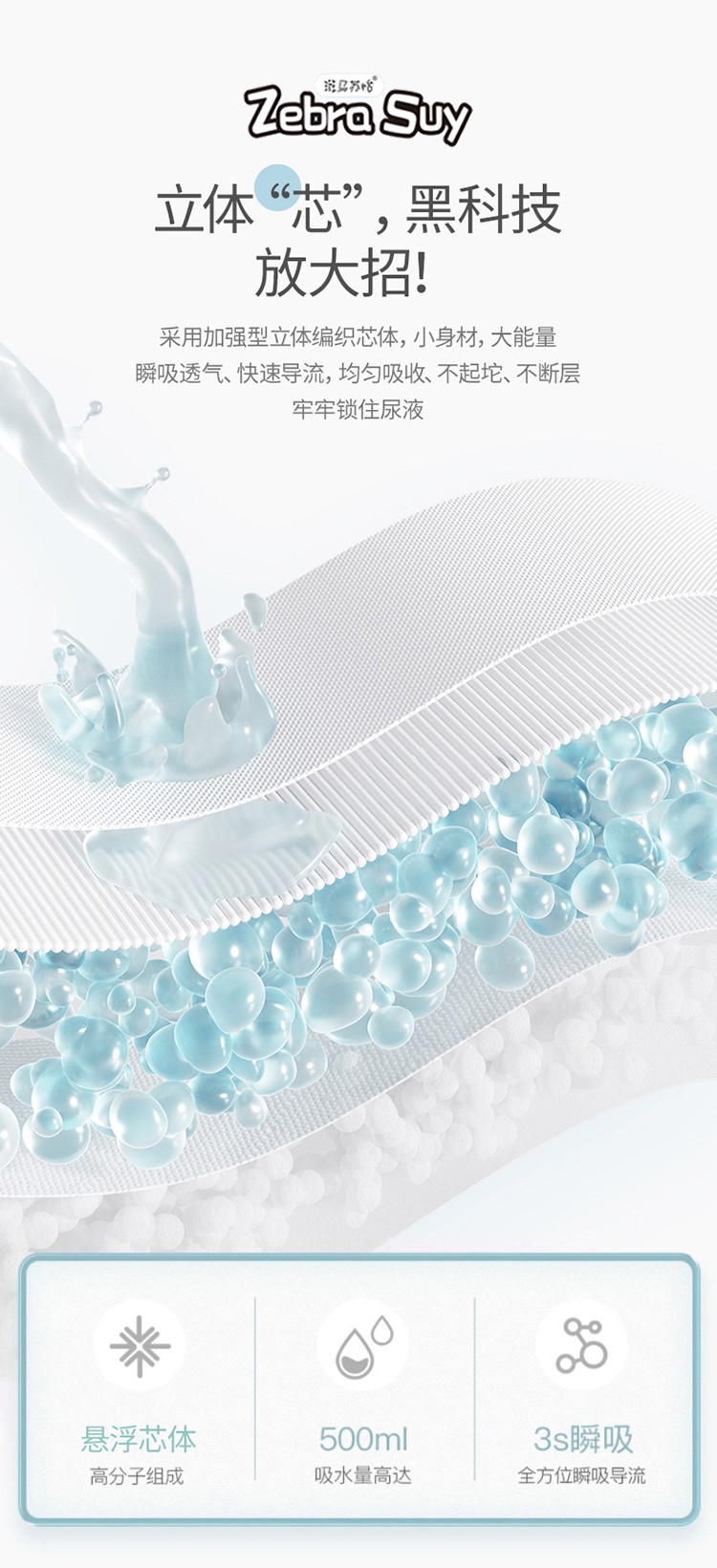 斑馬蘇怡紙尿褲/拉拉褲,大環(huán)腰加高護圍,加寬腰圍設計,柔軟有彈性,貼合身形不勒肚肚;輕柔蓬松3D熱風立體棉層雙倍親膚的柔軟,如云觸感,宛若初生;薄約0.1cm輕薄芯,薄如一枚硬幣,小PP沒負擔;立體“芯”,不止于薄還超能吸,增加前后吸水面積,容納寶寶大尿量;360°環(huán)抱寶寶小腰身,配合3D立體剪裁,動感貼合寶寶曲線,隨心所動;采用加強型立體編織芯體,內(nèi)含魔力縮水珠,瞬吸透氣,快速導流,均勻吸收,不起坨、不斷層,牢牢鎖住尿液;雙層5cm加高防漏側(cè)擋,隨心動;靈敏智能尿顯,變色快,勤更換,給寶寶看得見的安心呵護。