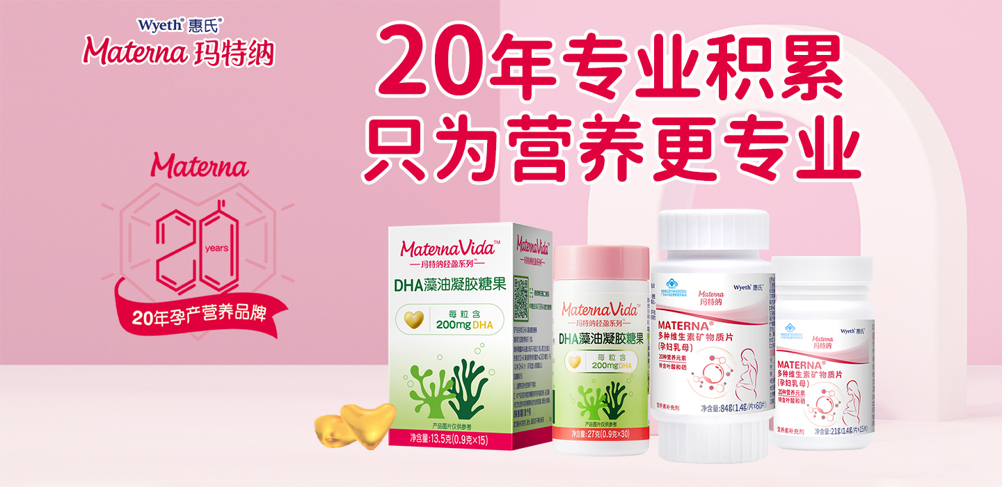 惠氏瑪特納是惠氏專門面向孕產的品牌。惠氏瑪特納在1986年品牌注冊進入中國,并于1995年獲得OTC批文,旗下第一款孕婦多維產品正式進入中國市場。20多年來惠氏瑪特納致力于專項研究備孕、懷孕和哺乳期各個階段的不同營養所需與常見的健康挑戰,為中國媽媽和寶寶科學規劃不同的營養產品,提供專業營養解決方案。