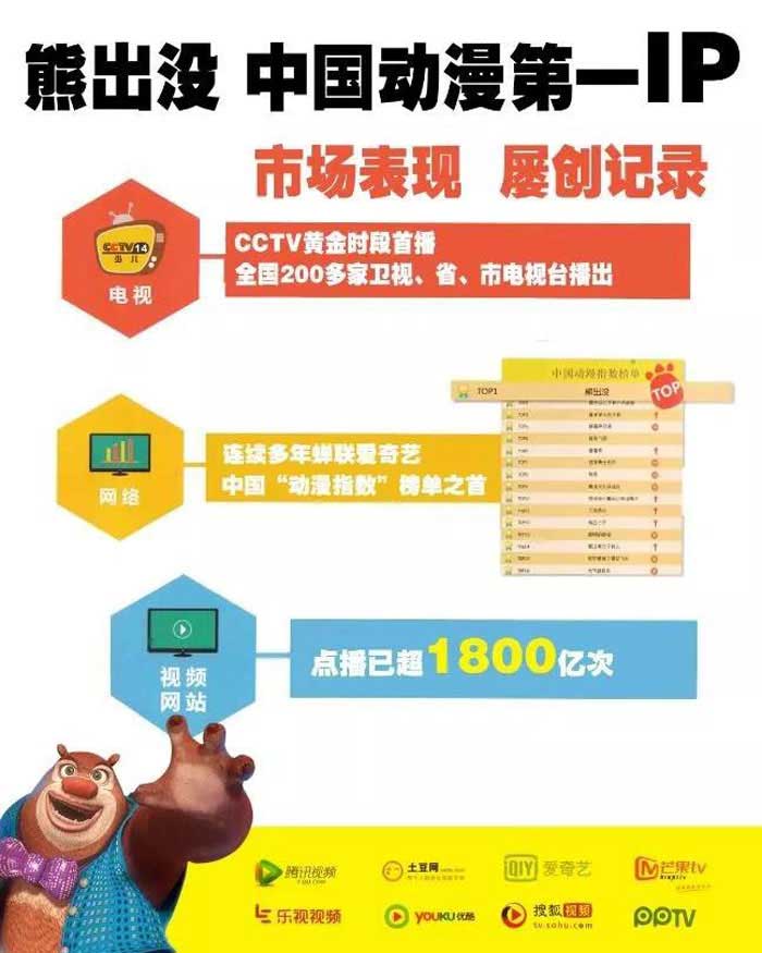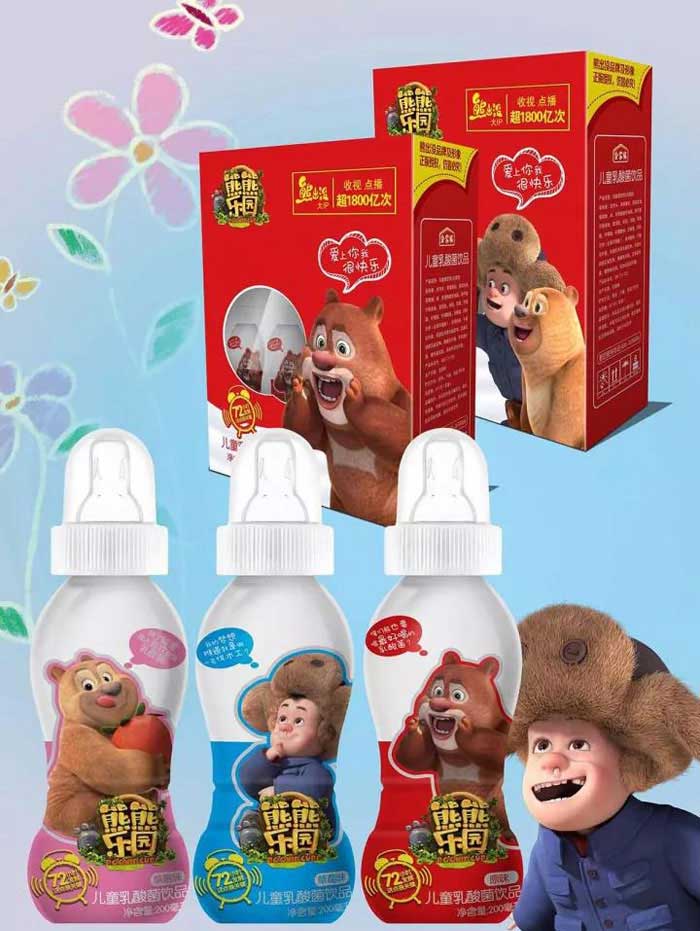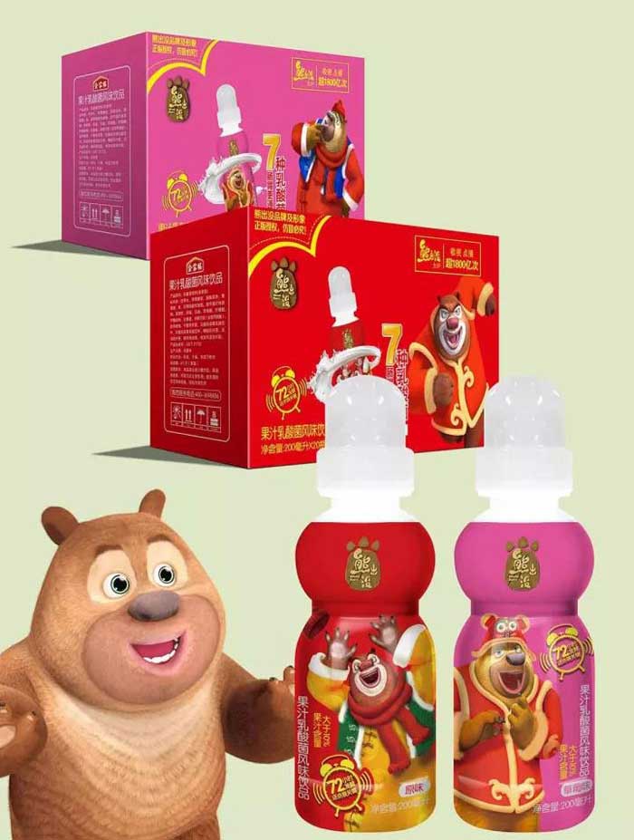 涪泉乳業簽約風靡全國的動漫品牌《熊出沒》,借著熊大熊二光頭強等動漫人物的超高人氣,3億多“熊粉”,孩子們下載、點播、不準換頻道、天天與“熊熊”在一起,品牌自帶強大流量。