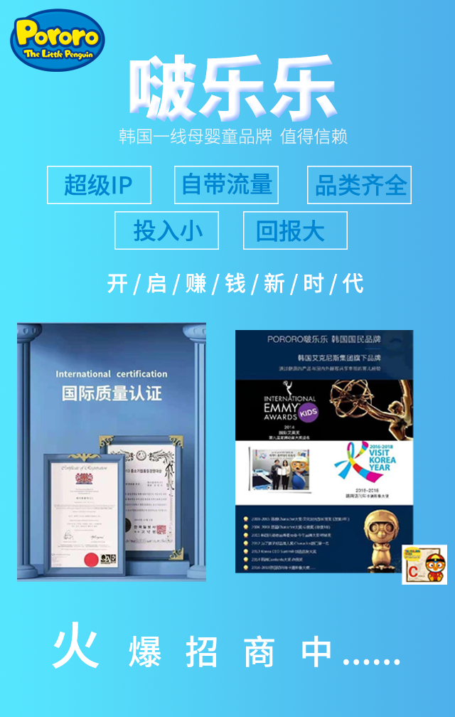 中國杭州浩康文化傳播有限公司,是韓國啵樂樂Pororo品牌在中國大陸地區唯一指定的全品類運營商。