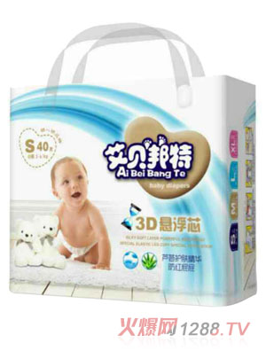 艾貝邦特3D懸浮芯紙尿褲是湖南艾貝邦特生活用品有限公司旗下主營的一款紙尿褲,最新進口3D懸浮芯體,魔力暢吸,超薄干爽透氣,F湖南艾貝邦特生活用品有限公司面向全國空白市場區域誠招代理商,歡迎有興趣的朋友咨詢加盟。