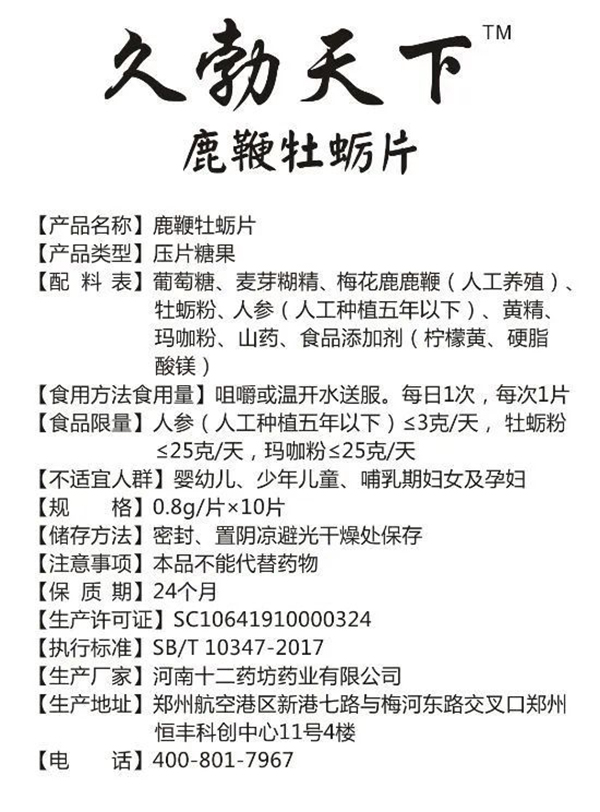 5 久勃天下人參鹿鞭牡蠣成人滋補口服片