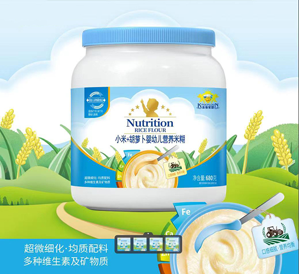 金盾愛嬰嬰幼兒營養米糊,有鈣鐵鋅益生菌、高鐵高鈣、果蔬多維、小米+胡蘿卜等多款配方單品,精選優質谷物為原料,采用超微細化工藝,均質配料,配比多種維生素及礦物質,口感細膩,營養均衡。