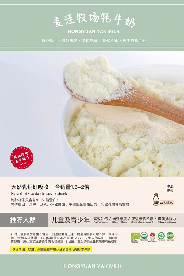 紅原牦牛奶粉,始于1956,原生營養、無人工添加,中國、歐盟、美國三重有機認證。
