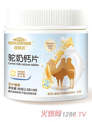 紐特優駝奶鈣片,科學配比,添加牛初乳粉、乳礦物鹽、益生菌等多種成分,每瓶鈣含量9000mg,奶香口感,含鈣豐富,更好吸收。中國人民保險承保,品質有保障。