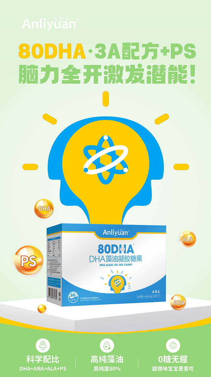 安黎元 80DHA 藻油凝膠糖果以卓越品質脫穎而出,其核心亮點在于 DHA 的超高純度 ——DHA 含量≥80%,遠超歐盟及行業標準,在同類產品中極具競爭力。產品精選純凈海域天然裂壺藻為原料,從源頭確保純凈與安全;同時嚴格遵循高標準生產工藝,做到不含八大過敏源,為消費者提供安心之選。在口感設計上,0 糖無腥的甜橙口味打破傳統營養品的局限,更貼合寶寶偏好;此外,產品特別添加 ARA、ALA、PS 等營養成分,以科學的 3A 配方 + PS 組合,為母嬰市場帶來差異化優勢。