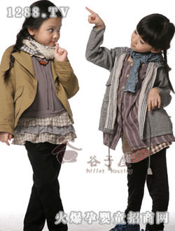 谷子屋童裝緊跟時尚潮流及市場最新動態,自然融入流行與典雅、舒適與大方,配以簡約流暢的線條、活潑明快的設計,獨具創意的細部處理,柔和的色彩搭配,盡善盡美的板型裁剪,演繹出兒童健康成長的舒適情懷。優雅而不失大方,含蓄中彰顯個性,灑脫蘊含內斂,時尚而不另類。