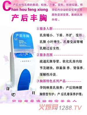 在媽媽孕育寶寶的時(shí)刻是一生中的最幸福的時(shí)刻,寶寶的出生使媽媽們看到了希望,但是在孕期媽媽們的身體已經(jīng)變得臃腫了,寶寶出生后,會(huì)在媽媽們的身上留下痕跡,所以愛(ài)美的媽媽們?cè)诋a(chǎn)后恢復(fù)是很重要的,自信媽咪產(chǎn)后恢復(fù)儀為媽媽們專業(yè)研制的產(chǎn)后恢復(fù)儀幫助媽媽輕松早就好身材,現(xiàn)產(chǎn)品面向全國(guó)誠(chéng)招加盟商。