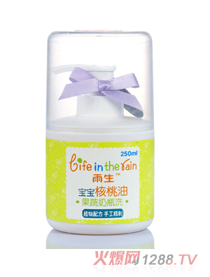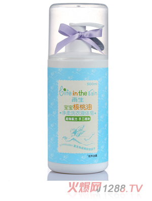 雨生bao--bao核桃油舒爽沐浴洗發露內涵核桃油精華。核桃油,核桃油中富含90%-95%的天然不飽和脂肪酸,亞油酸及亞麻酸,其中含有角鯊烯,黃酮類物質具有消炎、預防緩解濕疹皮炎及促進頭發烏黑亮等作用。
