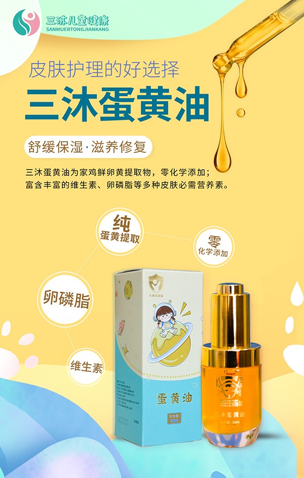三沐瑤浴蛋黃油為家雞鮮卵黃提取物,零化學添加,富含豐富的維生素、卵磷脂等多種皮膚必需營養素。舒緩保濕,滋養修護,適用于多種肌膚問題,如寶寶頭垢/紅屁屁、皮膚褶皺處淹紅、干燥起皮/皴裂/干疹、預防妊娠紋/乳頭皸裂、燙傷破皮等,家中常備皮膚護理的好選擇。