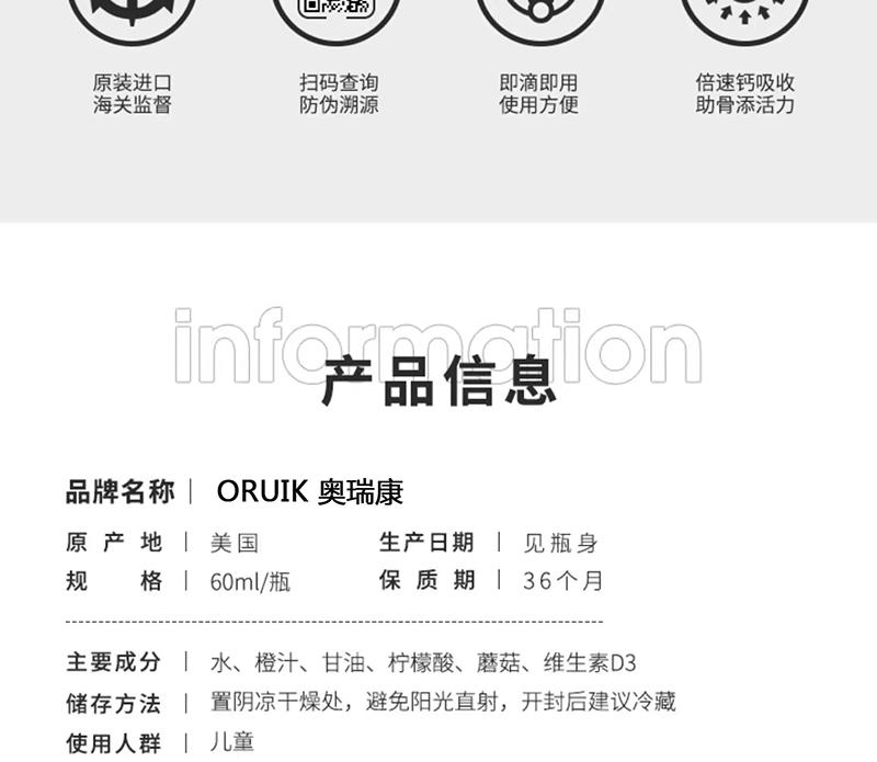 2018年美國(guó)奧瑞康健康產(chǎn)業(yè)集團(tuán)與美國(guó)奧蘭加利制藥公司合作,共同研發(fā)了ORUIK嬰童營(yíng)養(yǎng)補(bǔ)充劑系列,其產(chǎn)品采用天然提取、先進(jìn)工藝、科學(xué)配方研制而成。
