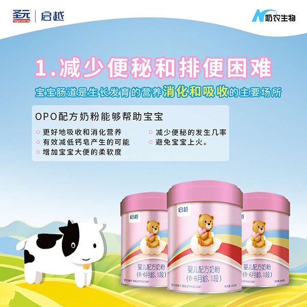 寶寶腸道是生長發(fā)育的營養(yǎng)消化和吸收的主要場所,OPO配方奶粉能夠幫助寶寶更好的吸收和消化營養(yǎng),減少便秘的發(fā)生幾率,有效減低鈣皂產(chǎn)生的可能,避免寶寶上火,增加寶寶大便的柔軟度。