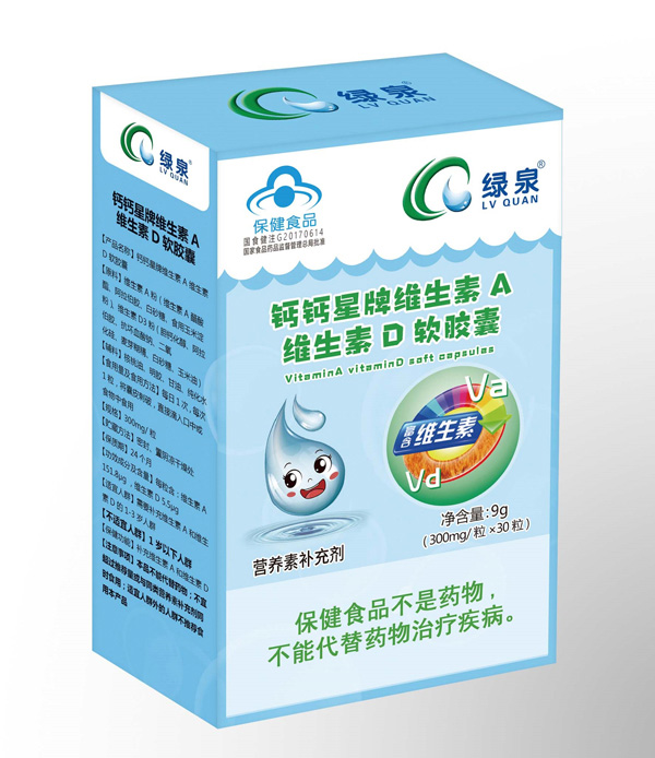 綠泉鈣鈣星牌維生素A維生素D軟膠囊產品展示
