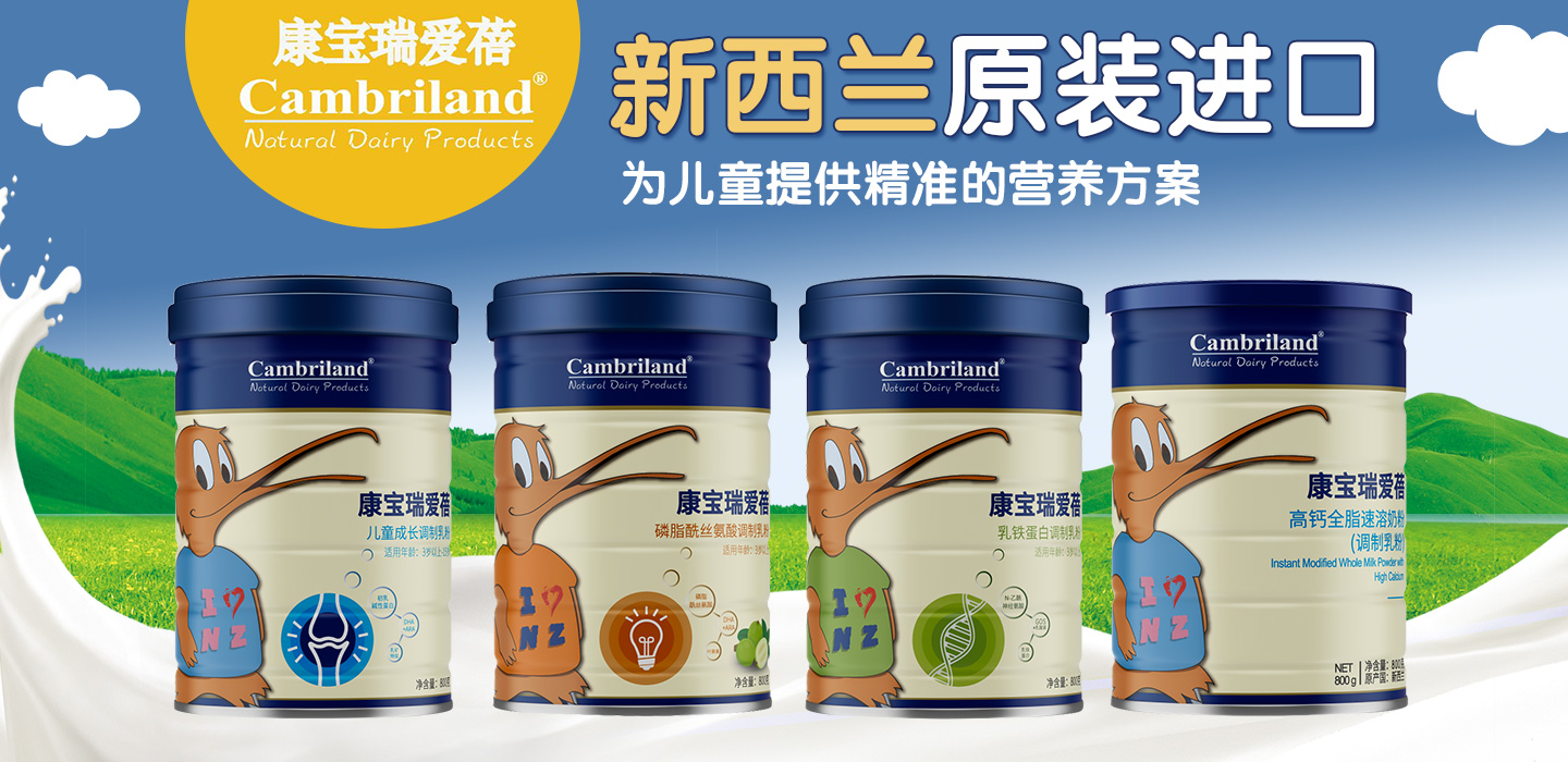 Cambriland公司專營(yíng)新西蘭天然牧場(chǎng)奶粉,秉承新西蘭乳品一貫的優(yōu)良品質(zhì),康寶瑞系列產(chǎn)品完全采用新西蘭優(yōu)質(zhì)奶源,采用優(yōu)質(zhì)配料和科學(xué)配方,純凈無(wú)污染,給您安全、放心的營(yíng)養(yǎng)補(bǔ)充。