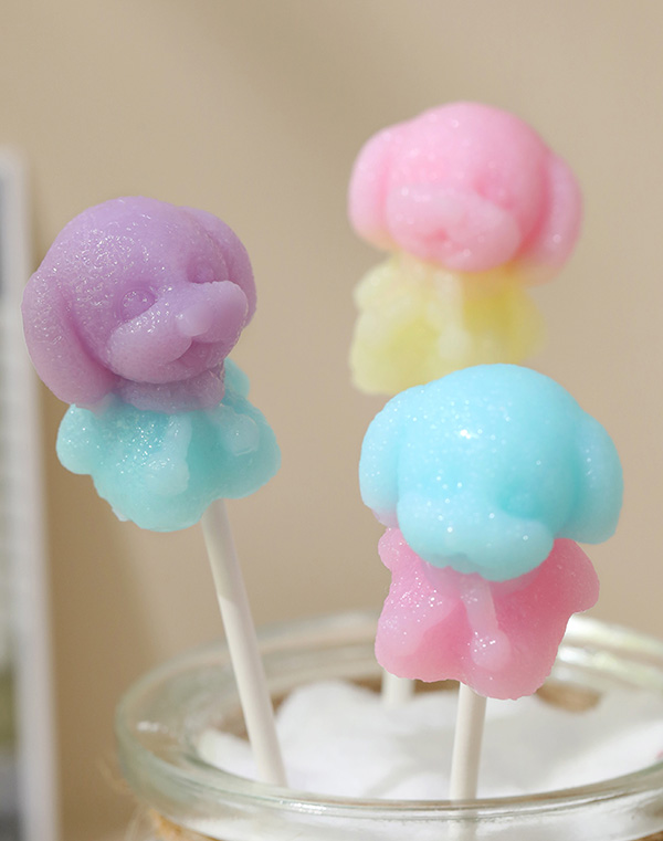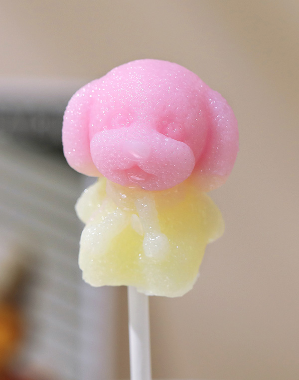 米唐たき動物派對棒棒糖-小狗馬卡龍紅黃產品展示