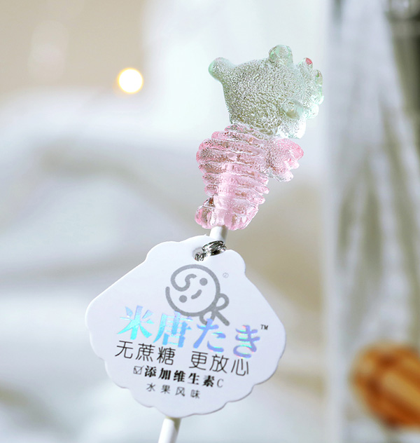 米唐たき海洋小分隊棒棒糖-海馬漸變白桃味產品展示
