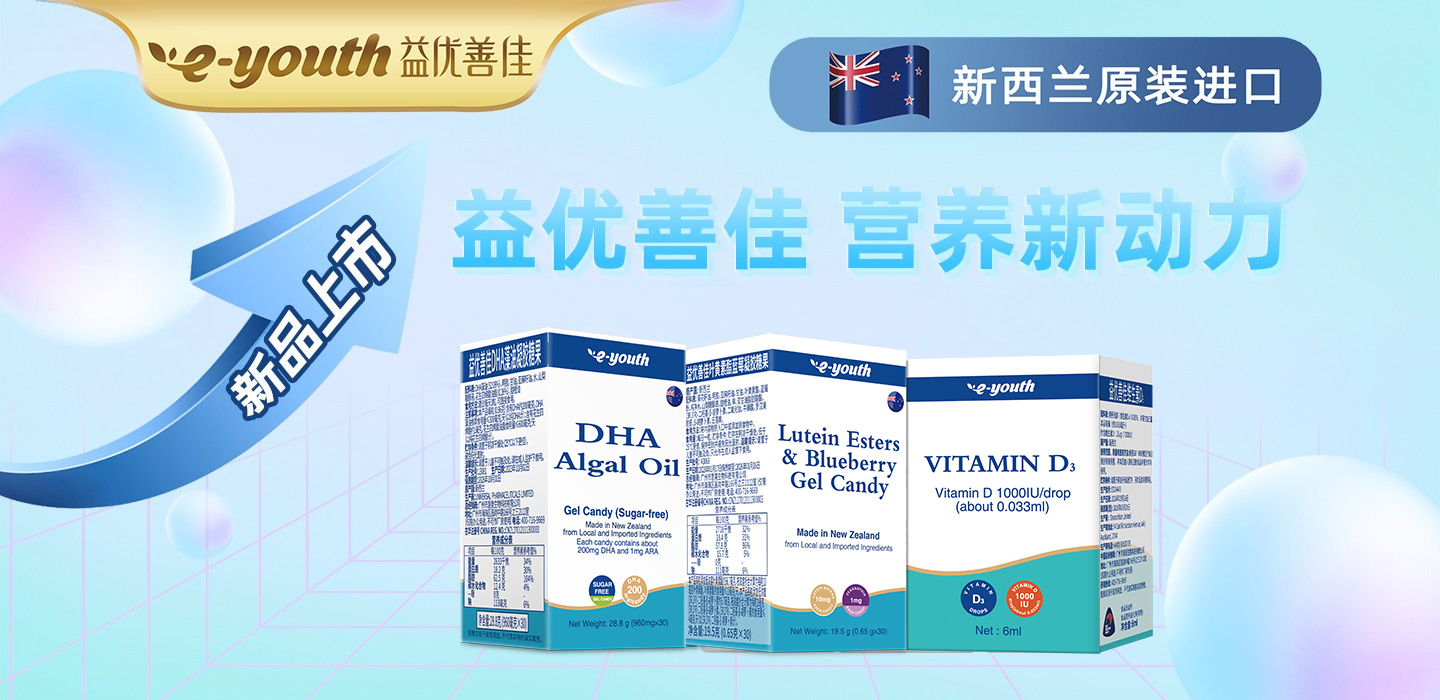 益優善佳營養品,有復配乳化劑、DHA藻油凝膠糖果、葉黃素酯藍莓凝膠糖果等,新西蘭原瓶原裝進口,歐盟各國同步銷售,多重認證,品質保證,值得信賴。