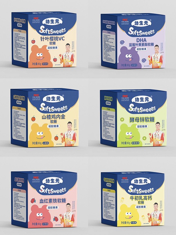 幼生元軟糖系列,精選優質原料,科學配比,添加多種營養元素,有DHA藍莓葉黃素酯、牛初乳高鈣、血紅素鐵、酵母鋅、針葉櫻桃VC、山楂雞內金等多款單品,安全健康,營養美味,口感好,易吸收。