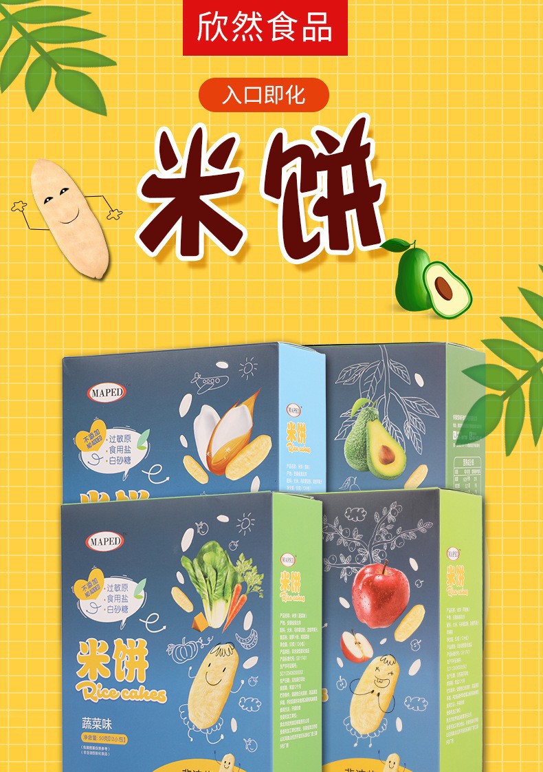 MAPED是淮北市欣然食品有限責任公司旗下代理品牌,欣然食品是一家兒童零食研發、生產、銷售一體式企業,主要從事膨化食品,米餅,泡芙,威化,蛋卷,薯片米果果等產品的研發和生產。