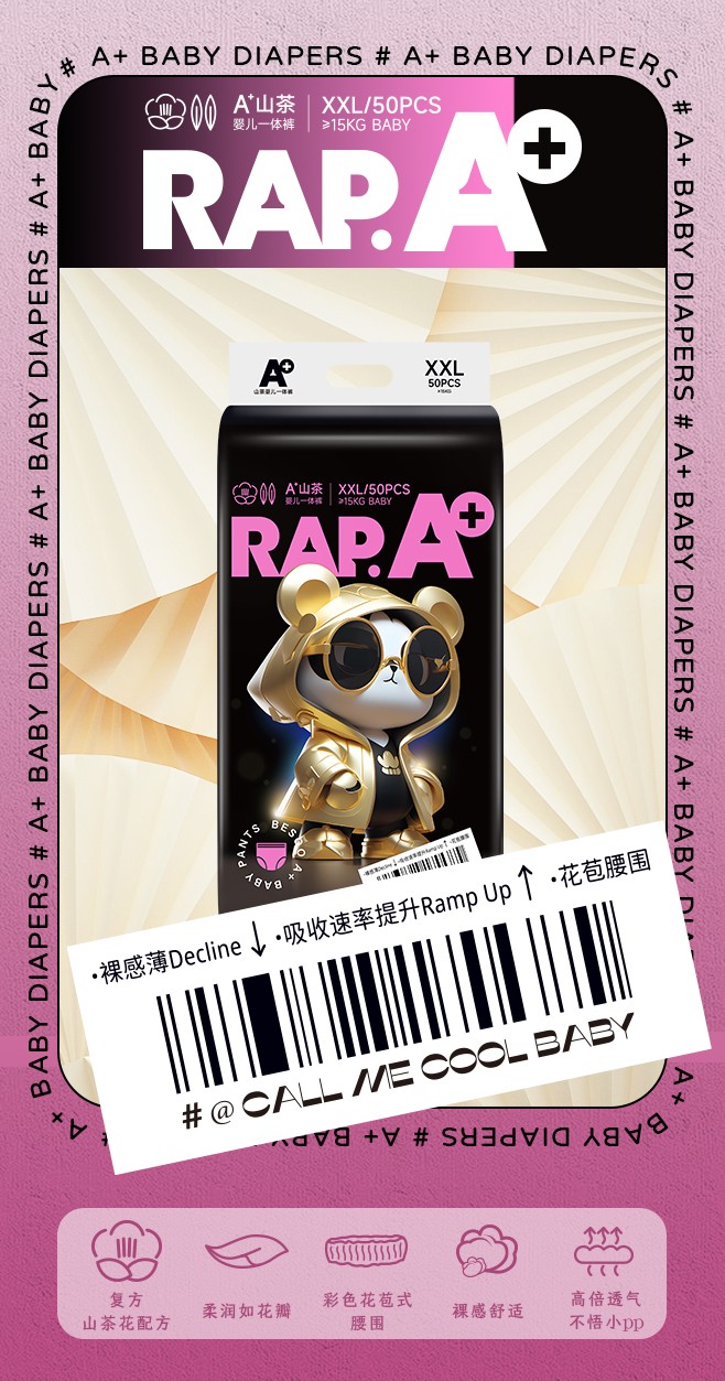 A+山茶紙尿褲/拉拉褲,復方山茶花配方,萃取天然山茶精華,貼心呵護寶寶嬌嫩肌膚;柔軟細膩,高彈力,不勒肚,給寶寶花朵包裹般的舒適感;凹凸透氣表層,透氣性能大大提升,更快釋放濕氣與熱氣;5000萬呼吸微孔,循環排濕散熱,不悶小PP;4cm加高護圍,雙側立體隔邊,避免尿液側漏。