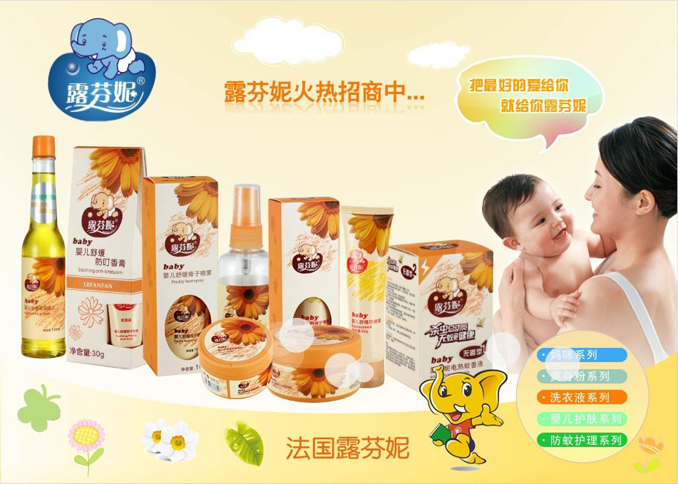 露芬妮嬰童洗護產品用料天然植物提煉,提倡人與自然和諧為理念,讓媽媽用得放心,寶寶用的舒心,力求研發優質的母嬰洗護用品。