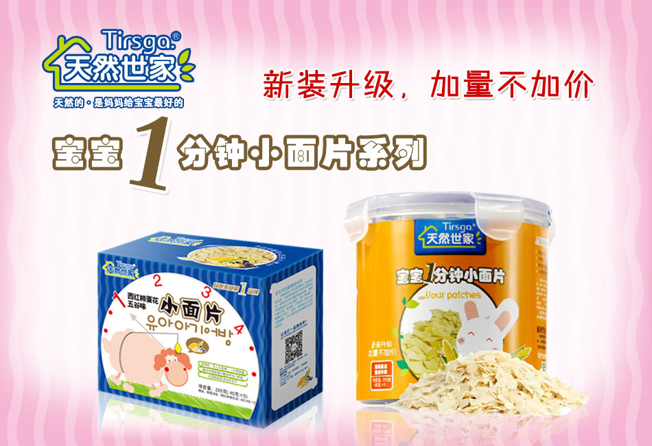 公司自主研發的“天然世家”系列“寶寶1分鐘小面片”上市伊始就受到了業界的一致好評,填補了國內在這個領域的空白,這一新品的上市更給各嬰童店的食品專柜創造了利潤增長點。產品好銷的原因一是改變了目前寶寶飲食單一的問題,二是解決了蝴蝶面中間不好熟,顆粒面煮面時間長等難題。