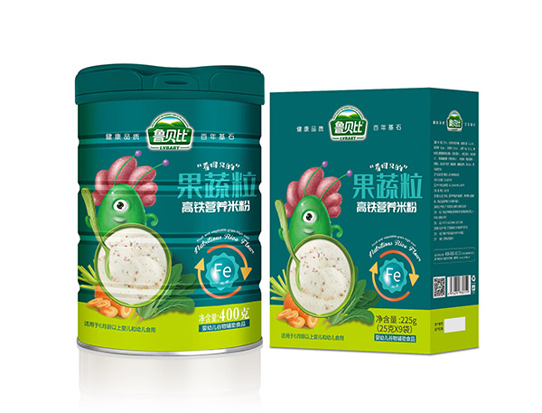 魯貝比果蔬粒高鐵營養米粉 盒裝產品展示