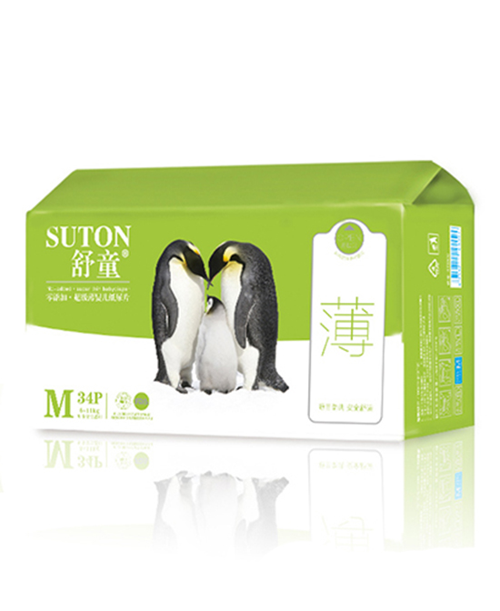 舒童超級薄紙尿片甄選優質原材料,采用熱風面料,熱風底膜,柔軟親膚表層、極致超薄、雙層隔邊防漏、海量吸收輕松自在,有S、M、L、XL四種不同的碼數,滿足不同年齡段的寶寶需求。