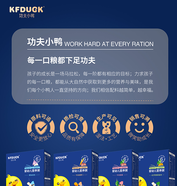功夫小鴨品牌致力于研發(fā)嬰幼兒系列產(chǎn)品,為中國(guó)嬰童提供天然、科學(xué)、優(yōu)質(zhì)的營(yíng)養(yǎng)食品,向新時(shí)代年輕父母宣傳國(guó)際先進(jìn)的育兒理念。公司主要產(chǎn)品系列有餅干、水果條、山楂制品以及泡芙溶豆等凍干食品。