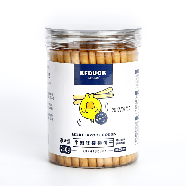 功夫小鴨牛奶什錦水果蔬菜香蕉牛奶味棒棒餅干新包裝230g產(chǎn)品展示