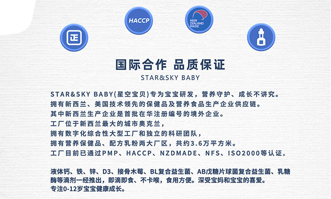 星空寶貝復合消化酶,新西蘭進口,精研品質,添加多種消化酶和益生菌,酶菌搭配,消化不累;液態滴劑形式,安全無添加,易吸收,無負擔,食用方便,隨時補充。