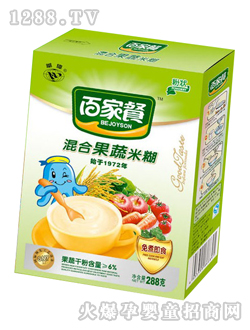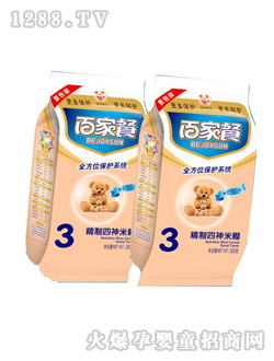 百家餐營養專家根據當代的生理特征及飲食習慣,研制出專供中國bao--bao的百家餐雙歧因子米粉。百家餐雙歧因子米粉產品精選各種有機食品為主要原料,富含多種維生素及礦物質,營養、健康、安全有保障。