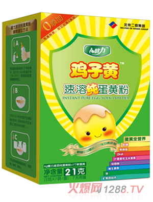 健力雞子黃是國際專業(yè)品質(zhì)的速溶純蛋黃粉品牌,旗下主打產(chǎn)品精選新鮮度AA級雞蛋為原料,全程保鮮運輸,72小時之內(nèi)新鮮成粉,具有更高的營養(yǎng)性和安全性。健力雞子黃品牌致力于為中國家庭提供更安全、更營養(yǎng)、更便利的優(yōu)質(zhì)放心食品,堅定地?fù)碜o蛋黃喂養(yǎng)的營養(yǎng)理念,倡導(dǎo)全新蛋黃喂養(yǎng)方式,讓父母有更多的時間陪伴孩子,更多親子互動促進孩子智能和體能全面發(fā)展。