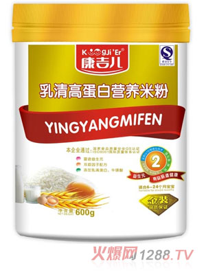 康吉兒乳清高蛋白營養米粉二段適合6-24個月的bao--bao,雙歧因子配方,富含益生元,特別添加乳清蛋白、牛磺酸等有助于bao--bao成長的營養物質。益生元幫助bao--bao營養健康的changdao環境;乳清蛋白營養價值高,好吸收,被譽為“蛋白之王”;牛磺酸是存在于人體內的一種必需氨基酸,有助于腦部和視力發育。