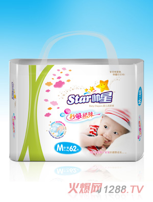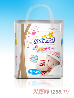 帥星嬰兒紙尿褲吸收快,透氣性好,它的表層-無紡布-吸收層-絨毛漿,高分子吸收體,導(dǎo)流層,魔術(shù)腰貼,防水外層-無紡布復(fù)合膜。彈性柔軟腰圍設(shè)計,使bao--bao穿起來沒有不適的感覺,活動自如,讓bao--bao在他的世界里不停的探索新的發(fā)現(xiàn)。