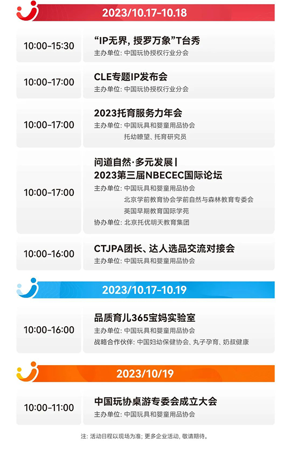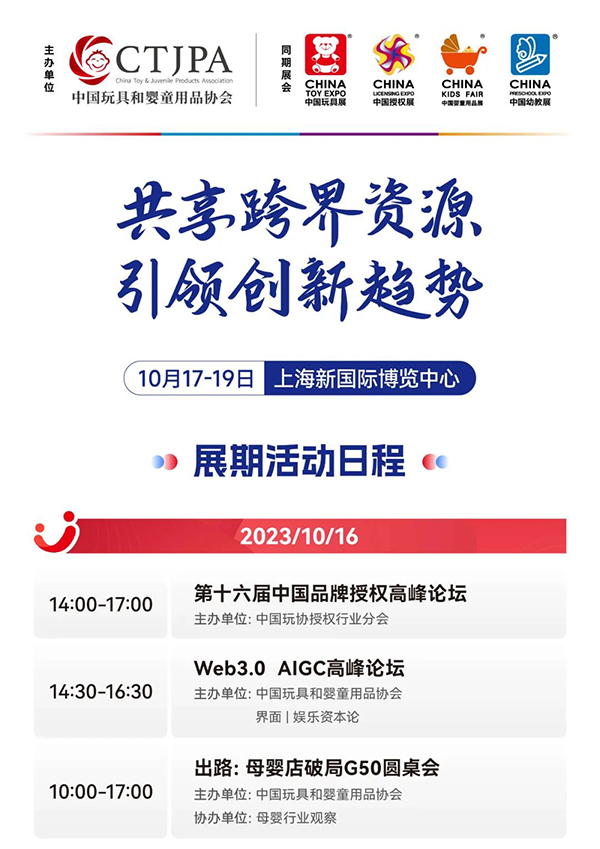 立足新發(fā)展階段,中國玩協(xié)四展堅(jiān)持“共享跨界資源、引領(lǐng)創(chuàng)新趨勢”的理念,搭建全行業(yè)共謀未來的深度交流合作平臺。展會(huì)同期將策劃舉辦超100場主題會(huì)議及論壇活動(dòng),涵蓋品牌授權(quán)、潮流玩具、母嬰零售、學(xué)前教育以及AIGC等多個(gè)領(lǐng)域和板塊,邀請各領(lǐng)域各板塊專家、跨界精英,相聚展會(huì)現(xiàn)場,進(jìn)行思想碰撞、觀點(diǎn)交鋒、剖析行業(yè)新機(jī)遇,共話行業(yè)新未來。